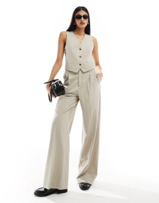 Mango – Beigt set med dad-kavaj, kostymväst och byxor