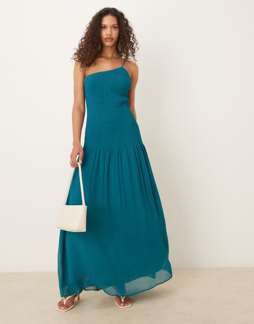 Mango – Blå, enaxlad maxiklänning med sänkt midja