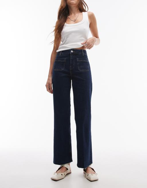 Mango – Blå flared jeans med fickor framtill