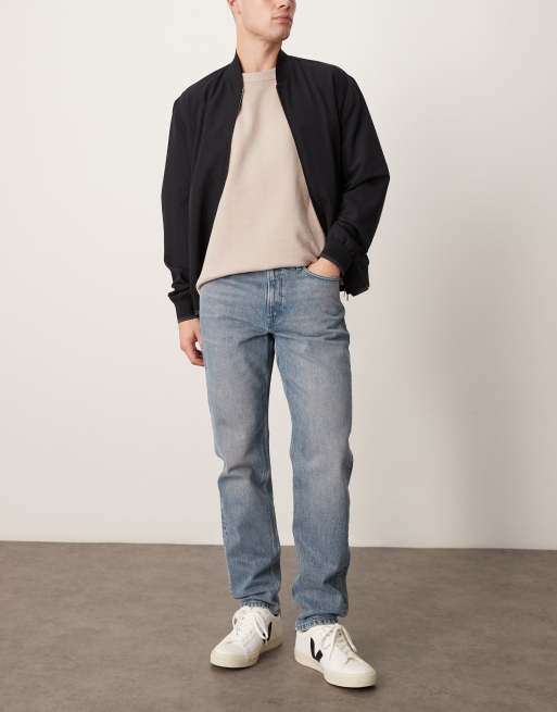 Mango – Blå raka jeans med medelhög midja och mellanljus tvätt