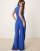 Mango – Blå, tunna byxor med raka ben och knytning i midjan, del av set