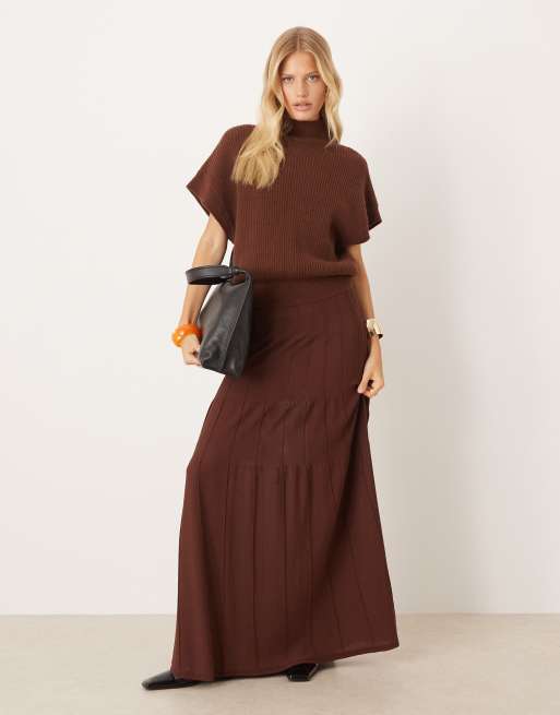 Mango – Brun, stickad och panelsydd maxikjol, del av set