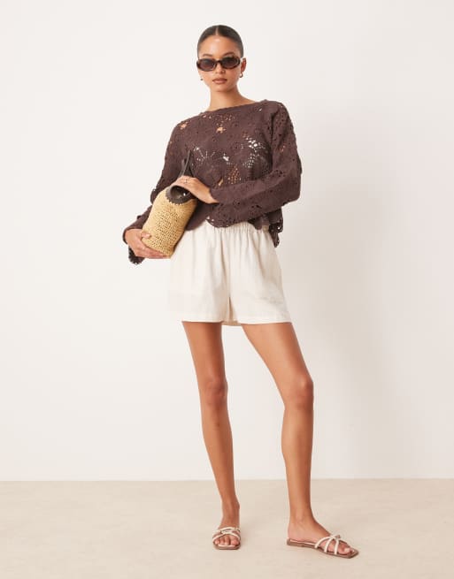 Mango – Brun, virkad topp med långa ärmar