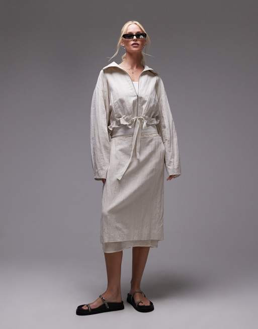 Mango – Capsule – Elfenbensvit, figursydd midikjol med organzaunderlager, del av set