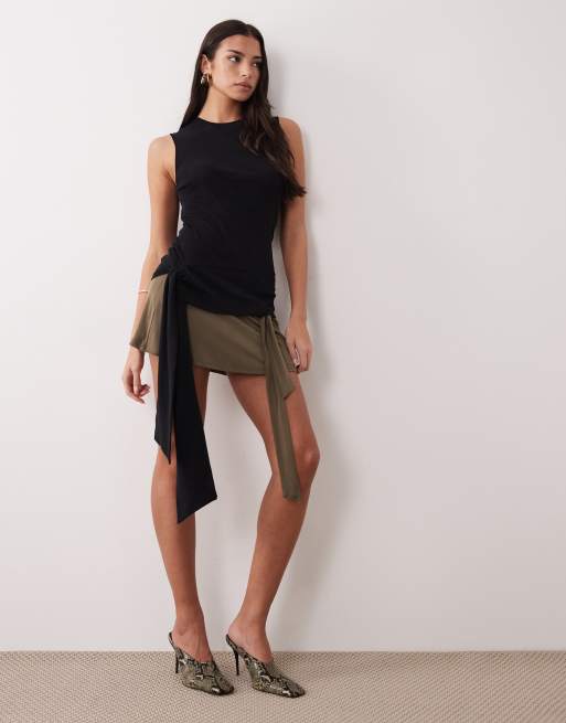 Mango – Capsule – Svart, stickat linne med knytning i 100% bomull