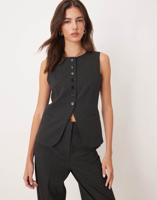 Mango – Daisy – Mörkgrå, figursydd kostymväst, del av set