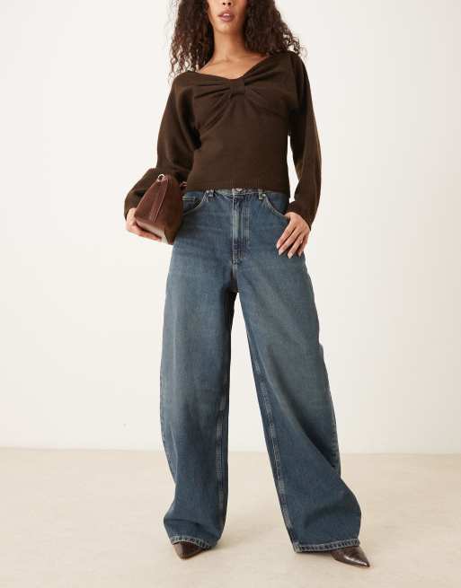 Mango – Danielle – Mörkblå, baggy jeans i 100% bomull