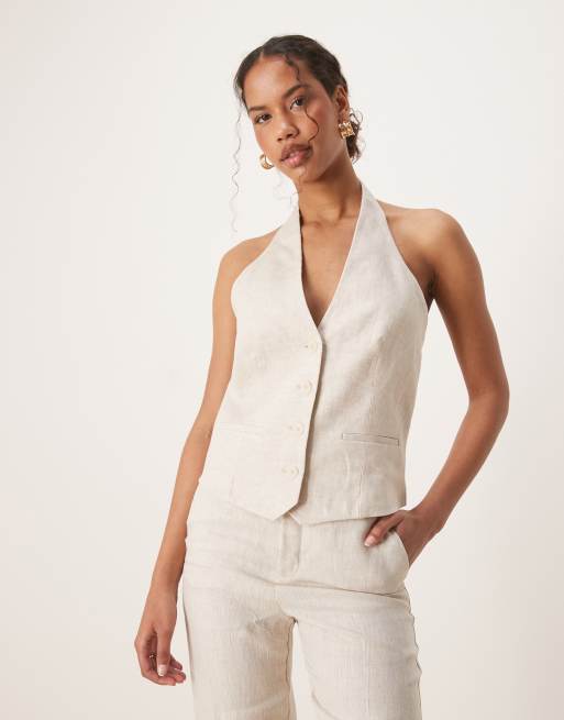 Mango – Gräddvit kostymväst i linne, del av set