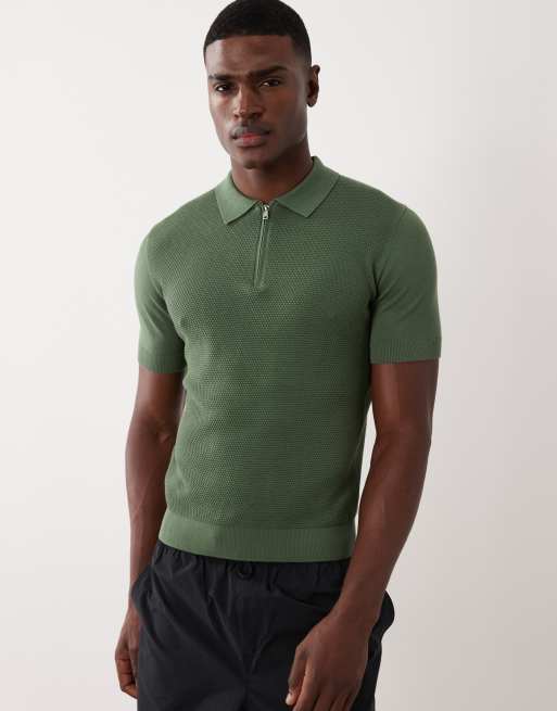 Mango – Grön pikétröja med kvartslång dragkedja