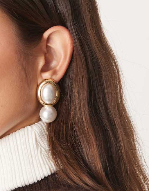 Mango – Guldfärgade, hängande örhängen med pärlor och stift