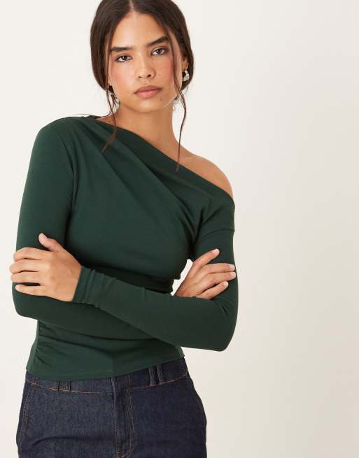 Mango – Kakifärgad, asymmetrisk topp med långa ärmar