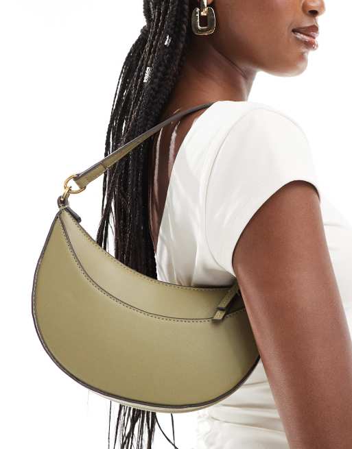 Mango – Kakifärgad axelväska i läderimitation