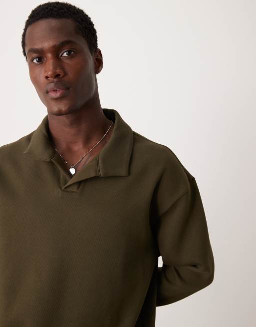 Mango – Khakifärgad, mjuk sweatshirt med pikékrage
