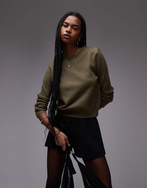 Mango – Khakifärgad tröja med rund halsringning och axelvaddar