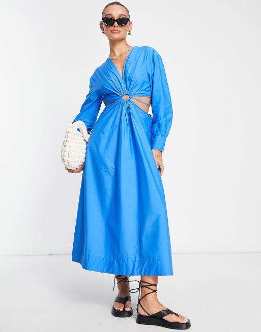 Mango – Klarblå midiklänning med utskurna detaljer och ringdetalj
