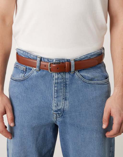 Mango – Ljusbrunt, klassiskt läderskärp med silverfärgat spänne