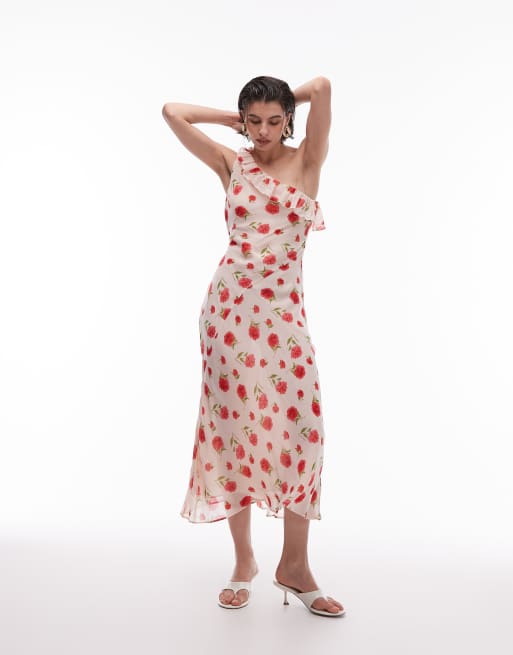 Mango – Ljusrosa, blommig klänning i enaxlad design