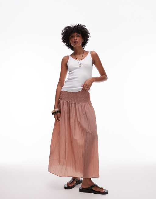 Mango – Ljusrosa, bohemisk kjol med rysch upptill