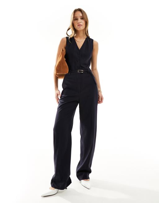 Mango – Marinblå figursydd jumpsuit med kostymväst.detalj