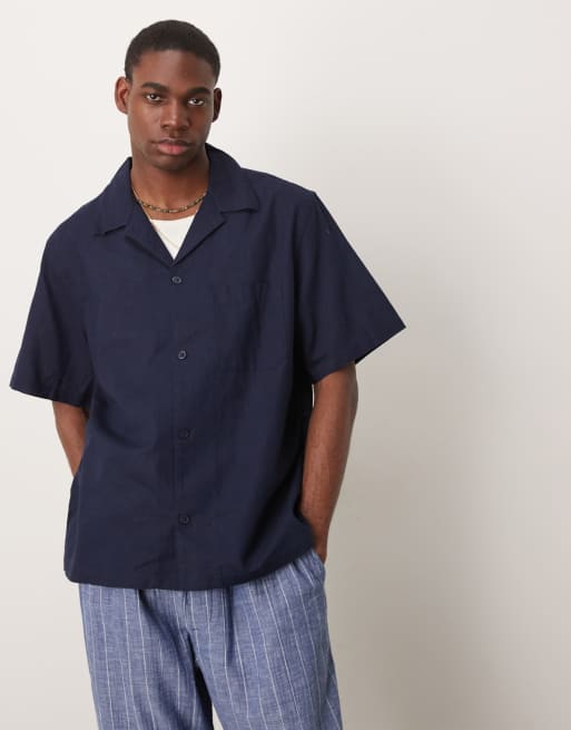 Mango – Marinblå skjorta i linnemix med avslappnad passform