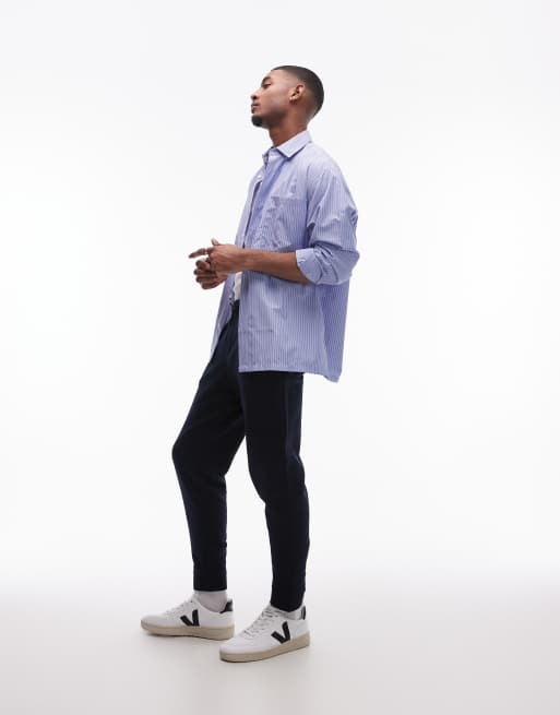 Mango – Marinblå, smala mjukisbyxor med dragsko