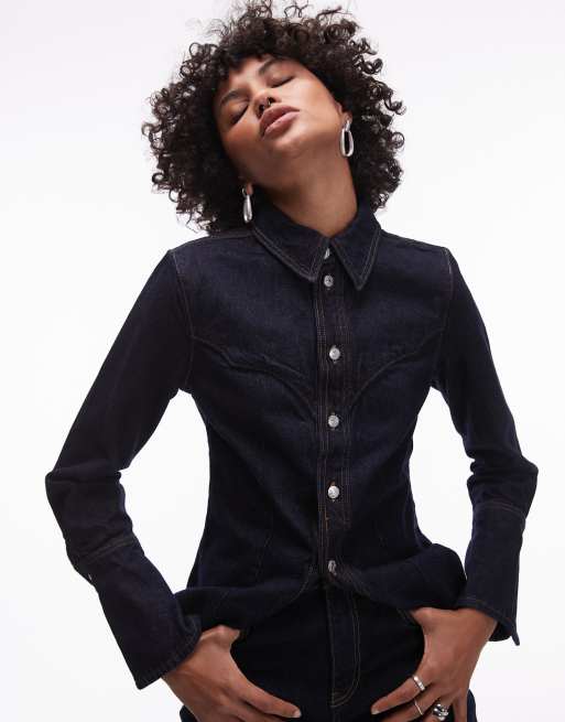 Mango – Mörkblå skjorta i cowboystil, del av set
