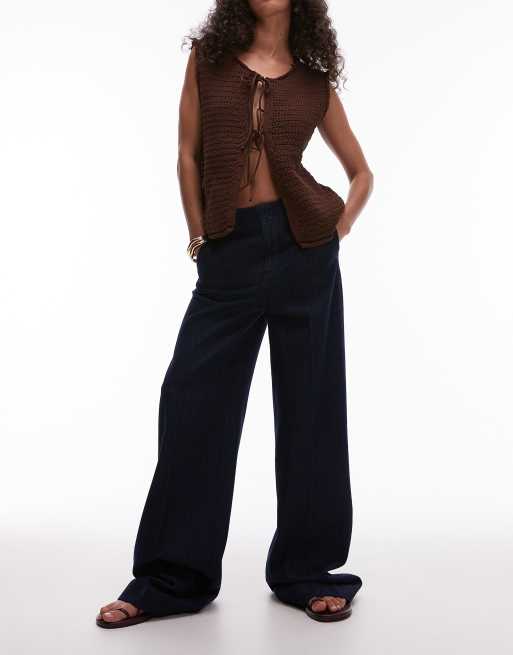 Mango – Mörkblå, vida byxor med elastisk midja