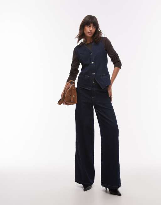 Mango – Mörkblått set med kostymväst och jeans i denim