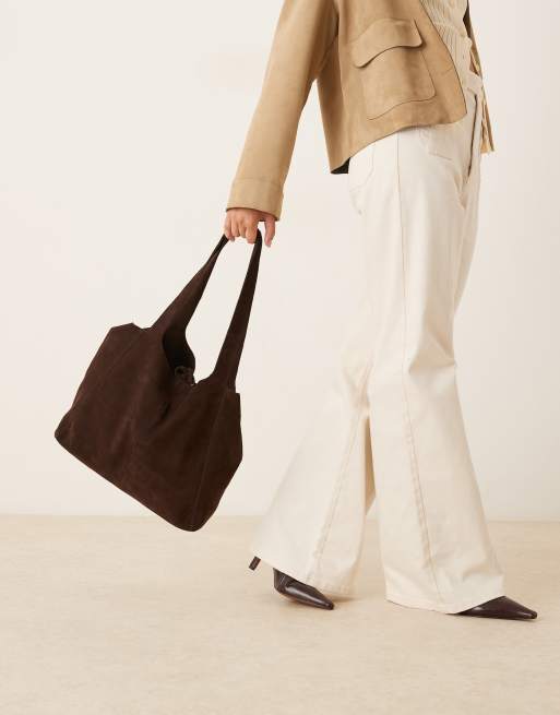 Mango – Mörkbrun toteväska i mocka