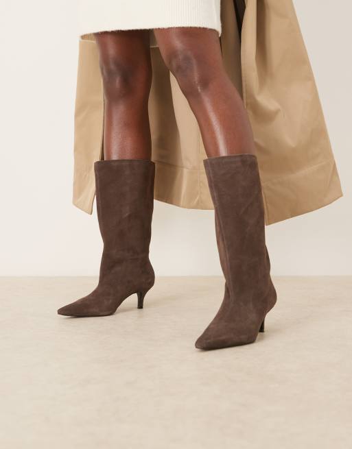 Mango – Mörkbruna klackboots i mocka med spetsig tå