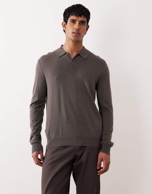 Mango – Mörkgrå, stickad pikétröja i 100% ull