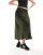 Mango – Mörkgrön, mönstrad midikjol i satin