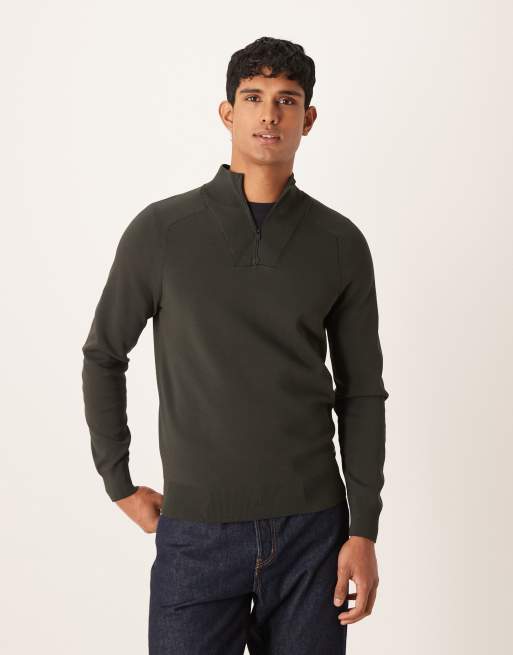 Mango – Mörkgrön topp med kort dragkedja vid halsen
