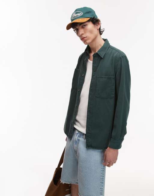 Mango – Mörkgrön, tvättad overshirt i bomull