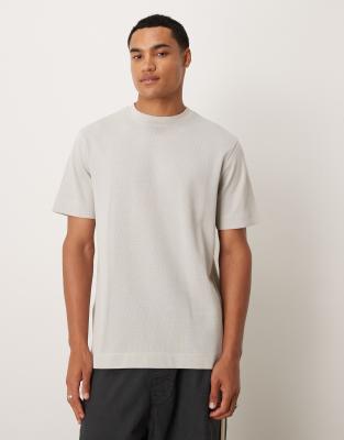 Mango – Naturvit, fiskbensmönstrad t-shirt i bomull