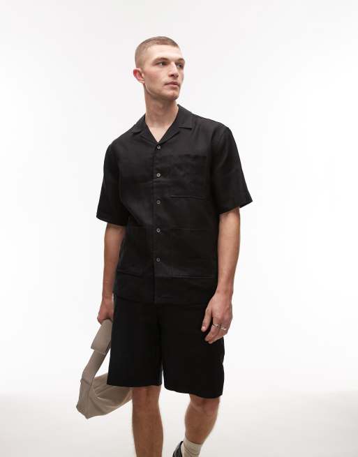 Mango – Premium – Svart linneskjorta med korta ärmar