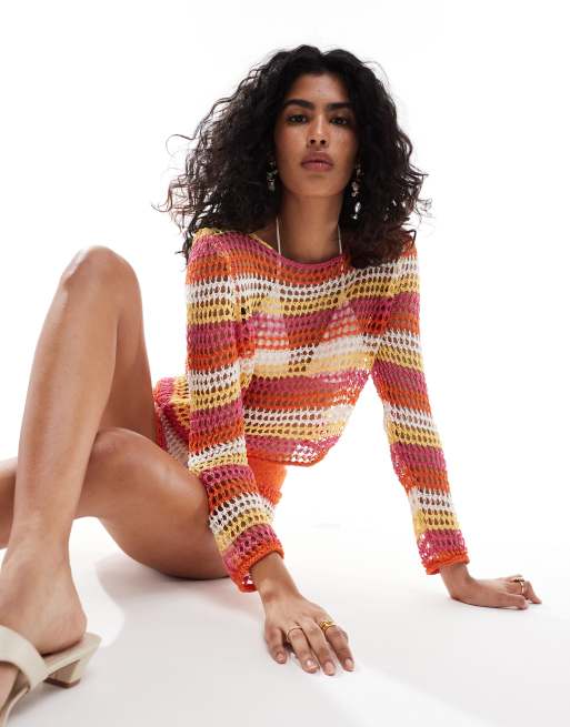 Mango – Röd, randig och virkad topp med kort design, del av set