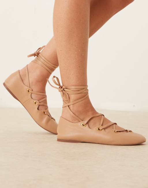 Mango – Rosa platta skor i läder med snörning