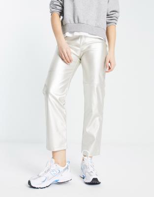 Mango – Silverfärgade raka byxor i läderimitation