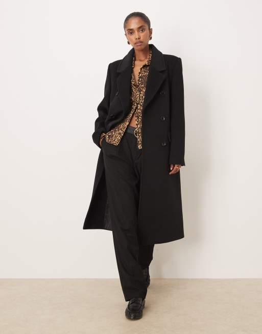 Mango – Svart, dubbelknäppt, figursydd jacka i ylletyg