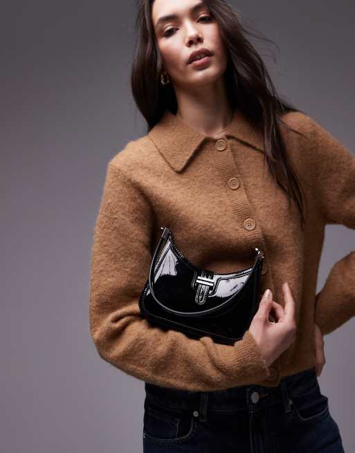 Mango – Svart glansig axelväska