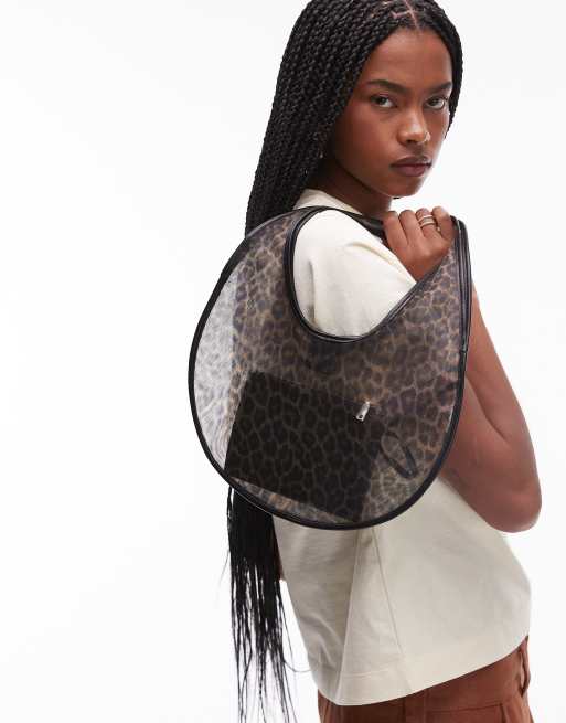 Mango – Svart, leopardmönstrad handväska i mesh
