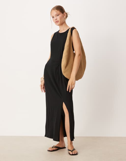 Mango – Svart midiklänning med knutdetalj och brottarrygg