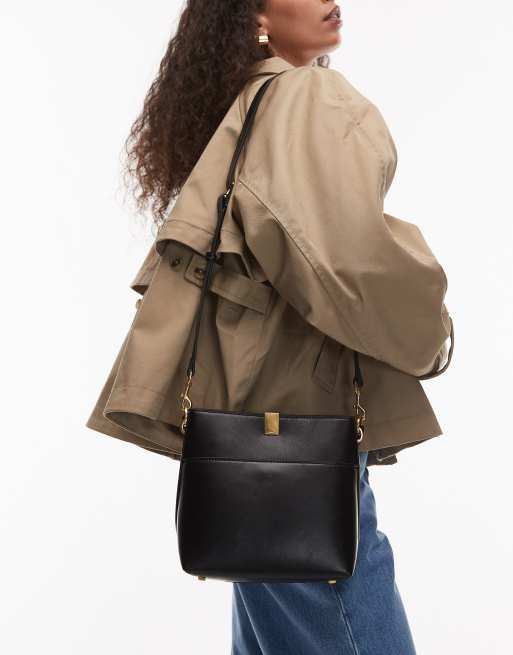 Mango – Svart väska i läderimitation med metalldetalj