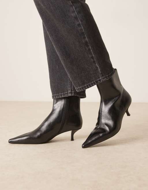 Mango – Svarta ankelboots med taxklackar och spetsig tå