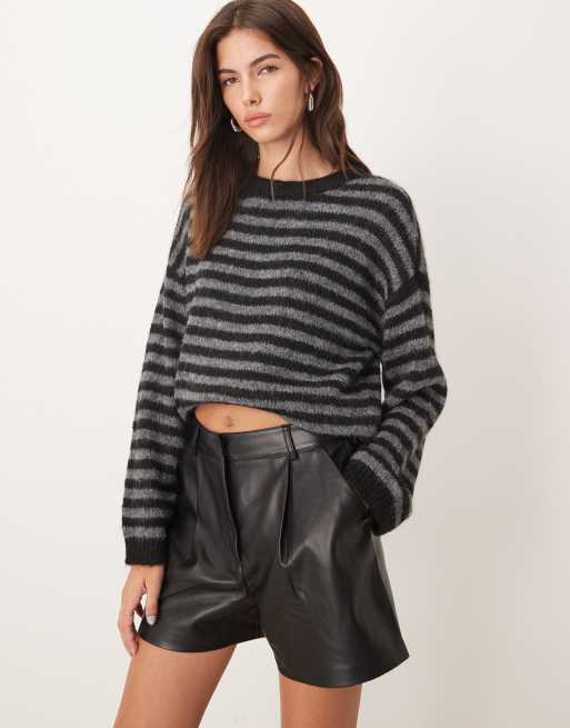 Mango – Svarta shorts i läderimitation med veck framtill