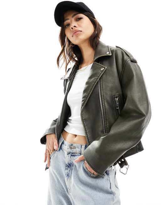 Mango – Svarttvättad jacka i läderimitation och oversize