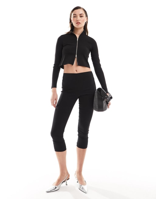 Mango – Tech – Svart set med jacka med dragkedja framtill och underdel i pedal pusher-stil
