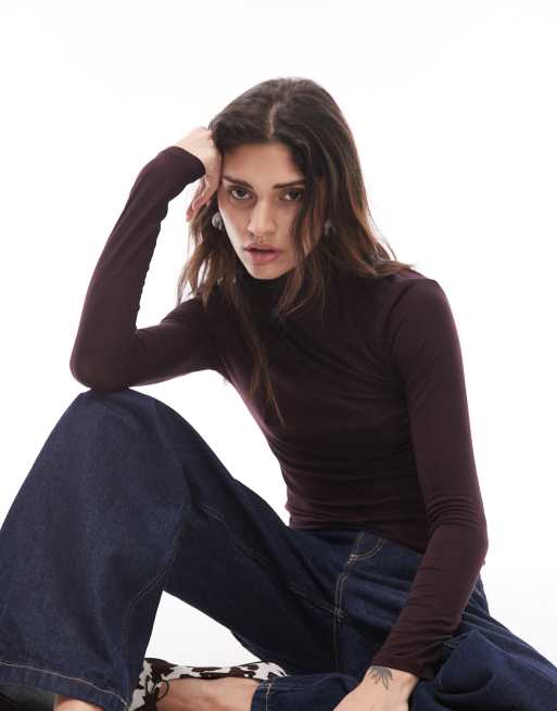 Mango – Vinröd, tight t-shirt med långa ärmar