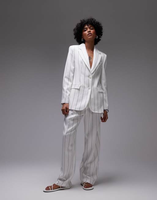 Mango – Vit, kritstrecksrandig och figursydd kostym, del av set